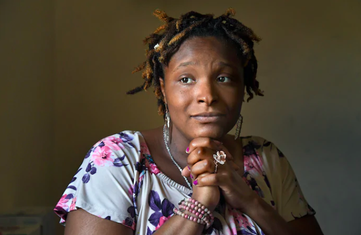 Lakeisha Rollins in her apartment in the District. She left her job at Whole Foods in March because of the pandemic. (Michael S. Williamson/The Washington Post)